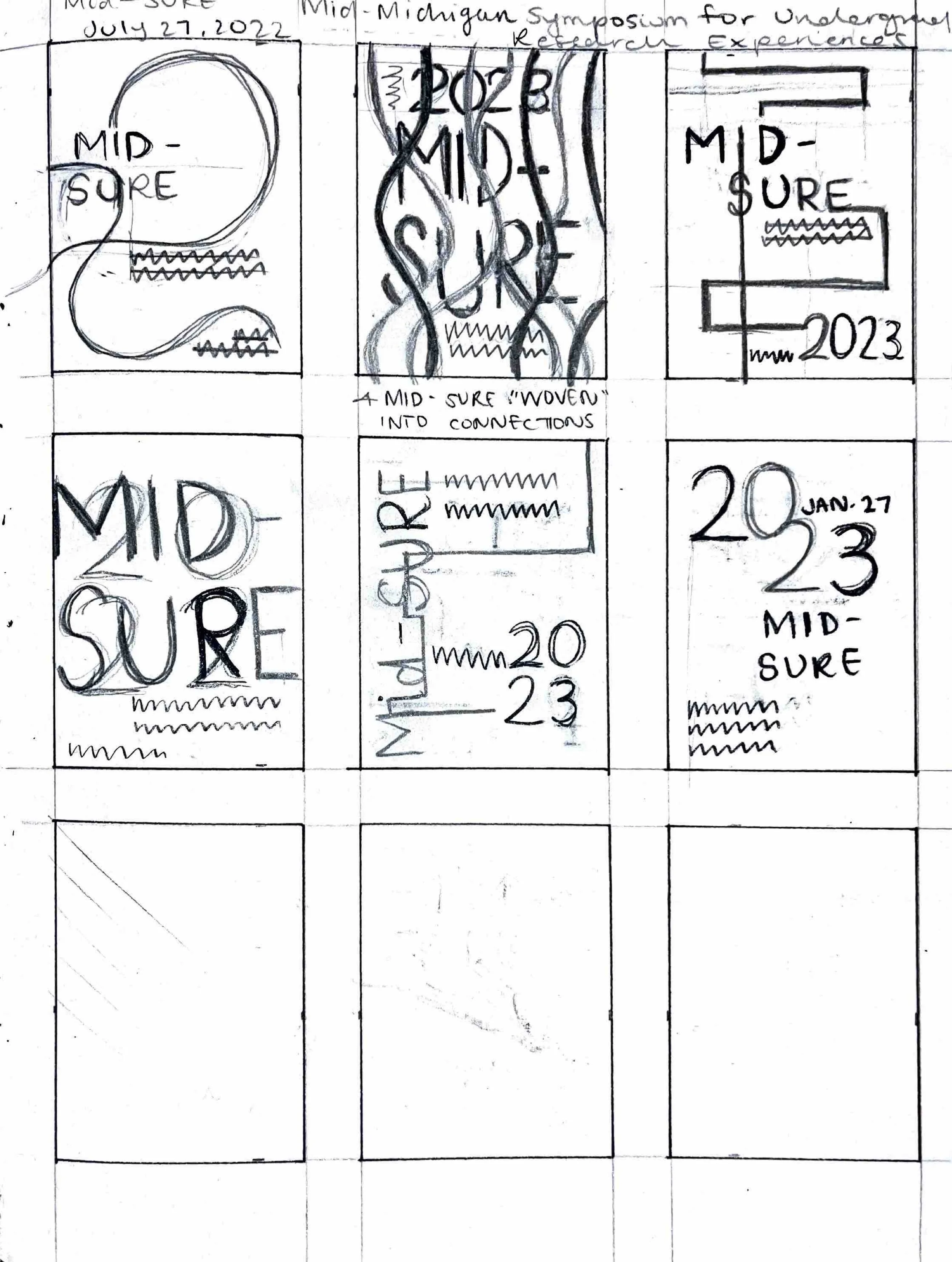 The primary function of the Mid-Sure Catalog and social media content is to showcase and celebrate the work of the individuals featured in the catalog and promote the event where students are given the opportunity to share their research. The catalog is a container for research in all areas, so the design needed to be inclusive and abstract enough to encompass any realm of research. The social media content needed to reflect that same goal in all its variations and continue the original catalog cover design.
