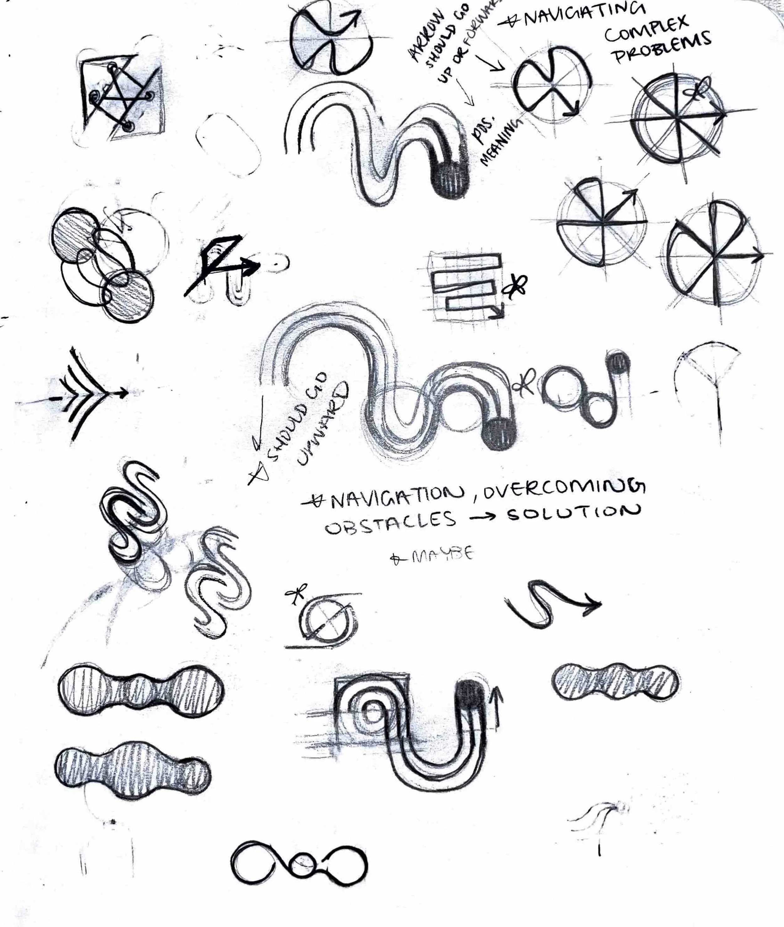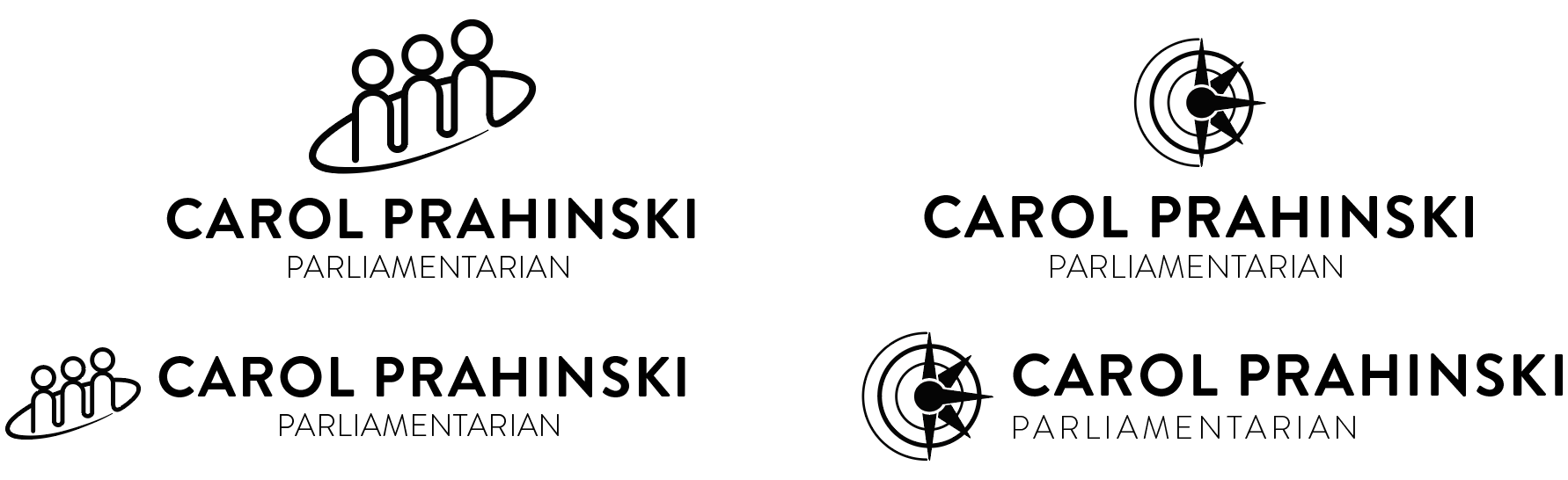 The logo is built around three abstract human forms that are representative of the parliamentarian and their clients. Guiding is illustrated through the way in which each “person” is connected and is encompassed by the line. This represents a “helping hand” aspect, a key theme the client defined when discussing what she wanted her logo to communicate. The direction of the line is meant to illustrate progress through its upward motion, and this motion is further emphasized through the varying line width as it circles around the group. In its entirety, each person is grouped together and brought in the same direction as they overcome obstacles and navigate together.